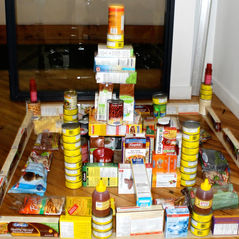For Thanksgiving, JAM holds the Tower of Thanks event – a staff-wide tower building contest to raise donations for local food banks. We build our creative structures using non-perishable items donated by JAM and JAM staff and then do a walk-around presentation to determine which tower is best in execution and creativity.